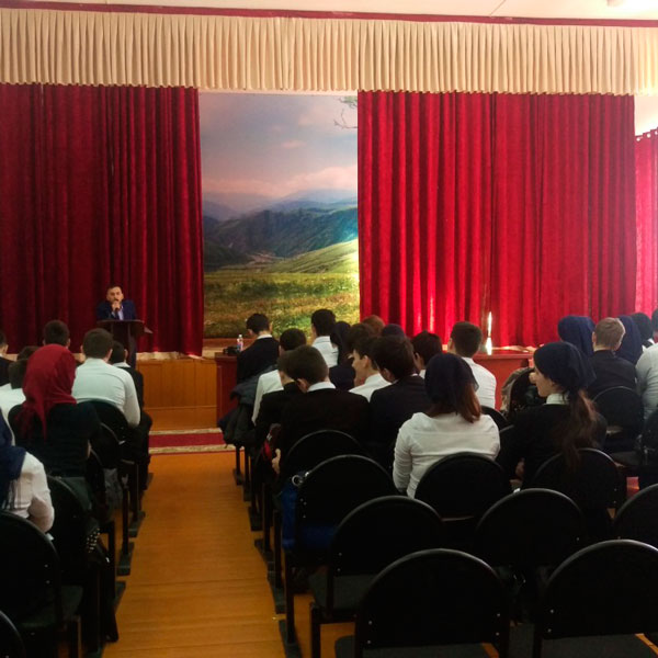 27.01.16г. В МБОУ «Лицей №1 им. Н. А. Назарбаева» состоялась встреча учащихся 9-11-х классов с ведущим научным сотрудником НМ ЧР (Национальный музей) Шахтиевым Алиханом Аслановичем.С учащимися старших классов была проведена беседа на тему: «Социальные последствия наркомании и психотропных веществ»В завершении встречи Алихан Асланович пригласил учащихся лицея посетить Национальный музей с целью формирования активной жизненной позиции учащихся на основе духовно-нравственных ценностей своего народа.