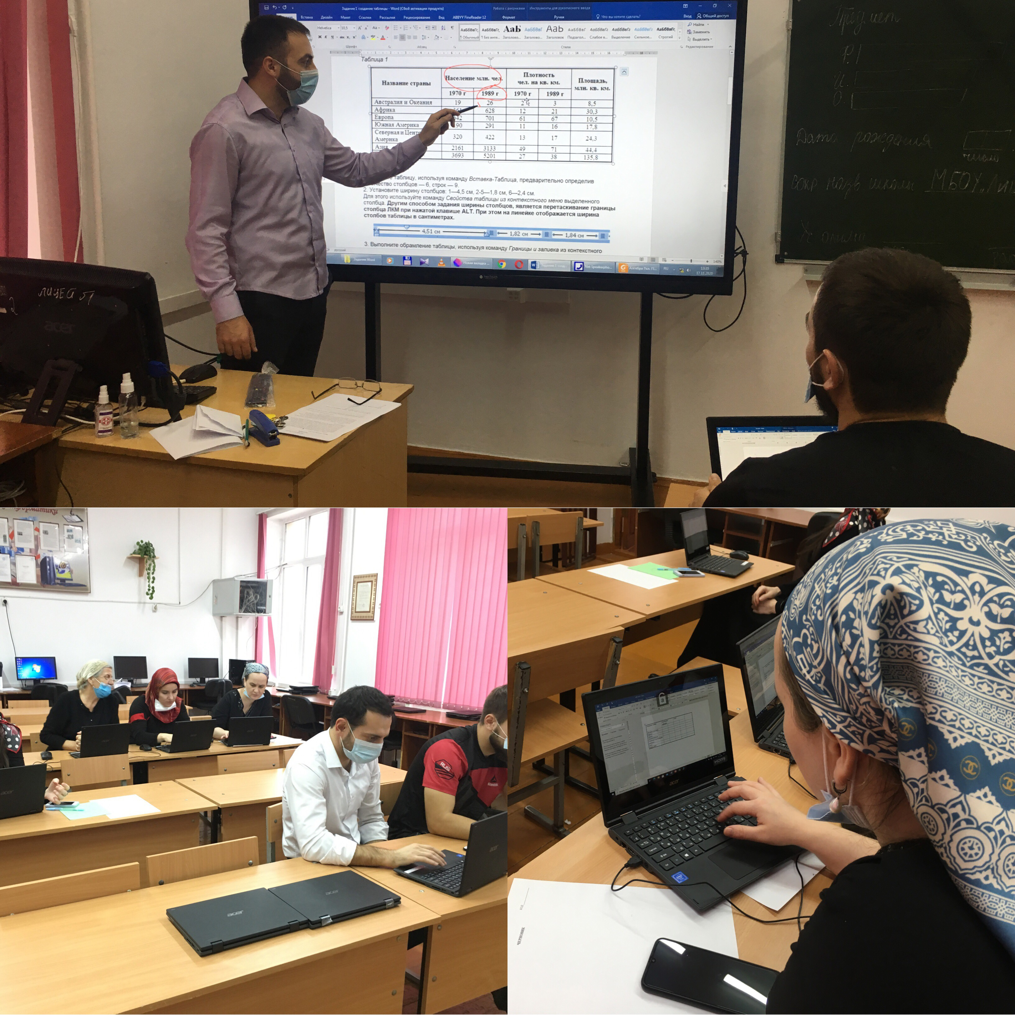 В рамках поручения начальника Департамента образования Мэрии г. Грозного Руслана Хатуева, заместителем директора по ИКТ Исламом Какаевым проведен мониторинг «ИКТ- компетентность педагогических работников». На основании результатов мониторинга педагогические работники разбиты на группы в соответствии с степенью затруднения использования ИКТ-технологий. Сегодня для первой группы, испытывающей затруднения в использовании текстового редактора был проведен обучающий мастер-класс.