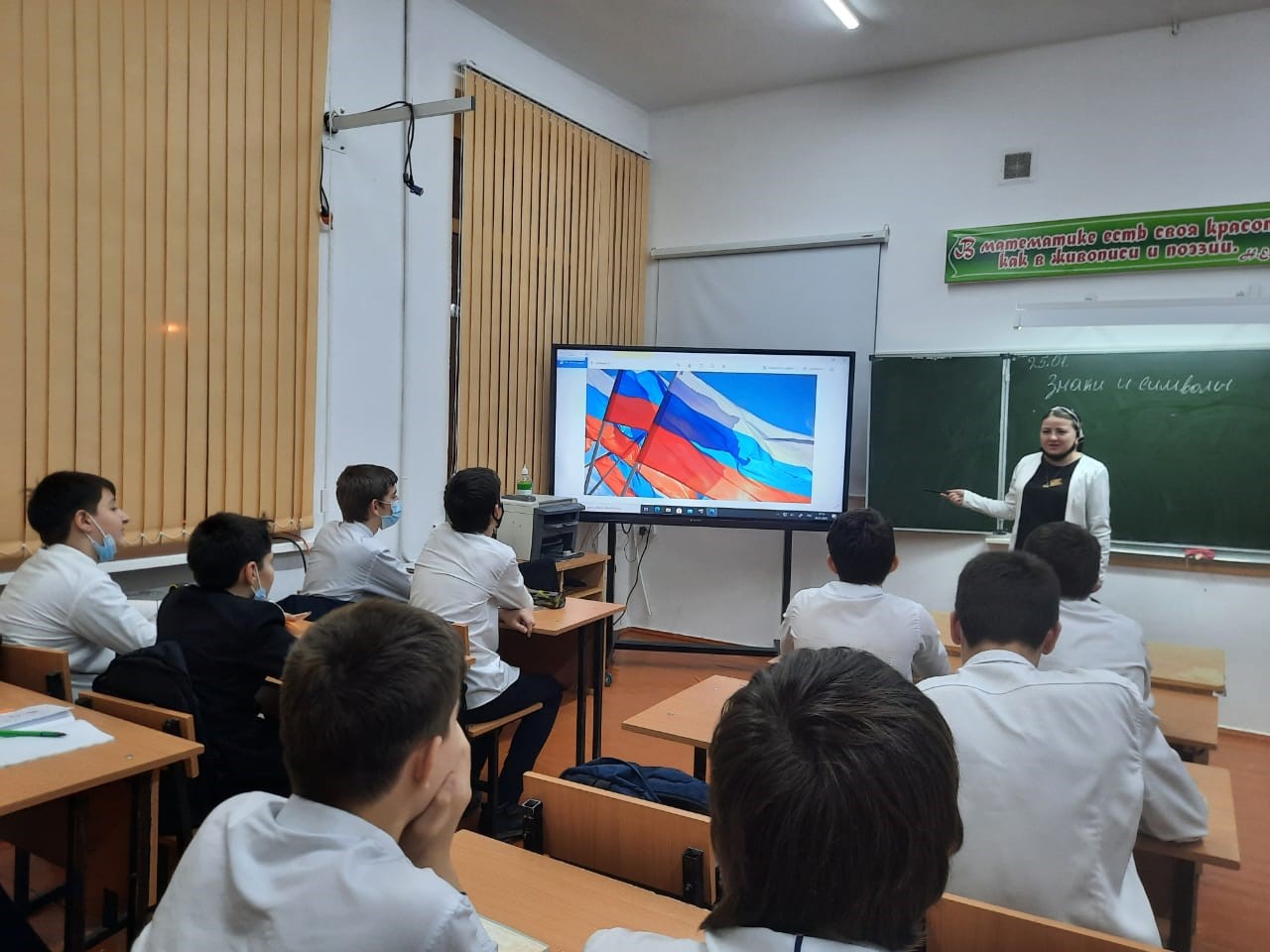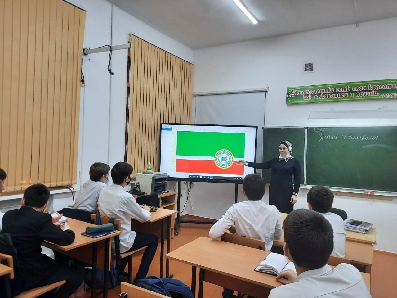 Проведены общешкольные мероприятия, посвященные знаменательным датам (День Народного Единства, День Конституции РФ, День Защитника Отечества. На уроках истории, обществознания, ИЗО, технологии обучающиеся знакомятся с государственными символами Российской Федерации и Чеченской Республики.