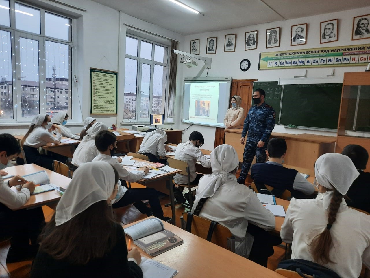 Проведено общешкольное родительское собрания с представителями ОПДН УВД г Грозного. Родители были ознакомлены с термином «Экстремизм», особенностями его проявления, основными признаками того, что подросток начинает попадать под влияние экстремистской идеологии. Родителям напомнили об ответственности родительского контроля за деятельностью детей и подростков в сети Интернет.