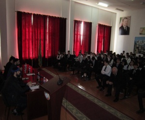 04.03.201504.03.15г. в лицее №1 с учащимися 9-10-11-х был организован и проведен семинар на тему профилактика экстремизма и терроризма среди учащихся представителями Департамента по связям с религиозными и общественными организациями Администрации Главы и Правительства ЧР. На встрече присутствовали: Дудаев Абдурахман – представитель Департамента по связям с религиозными и общественными организациями Администрации Главы и Правительства ЧР. Абдурахманов Магомед - представитель Департамента по связям с религиозными и общественными организациями Администрации Главы и Правительства ЧР. Косумов Магомед – педагог-организатор лицея №1 по духовно-нравственному воспитанию.