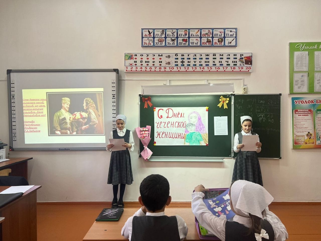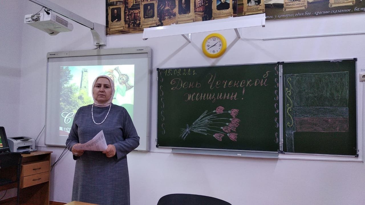 Согласно плану воспитательной работы, в целях формирования нравственной культуры учащихся, воспитания бережного отношения, заботы и чувства ответственности, воспитания уважения и любви к матери, женщине, привития уважения и любви к уникальным и богатым традициям и обычаям вайнахов, в школе ко Дню чеченской женщины в период с 12.09. по 16.09 в лицее прошли мероприятия, посвященные этой дате.