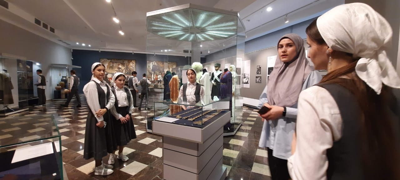 В рамках реализации национального проекта «Культура» и программы «Пушкинская карта», обучающиеся лицея посетили выставку в " Сквозь призму веков" в Национальном музее Музей Чеченской Республики.
