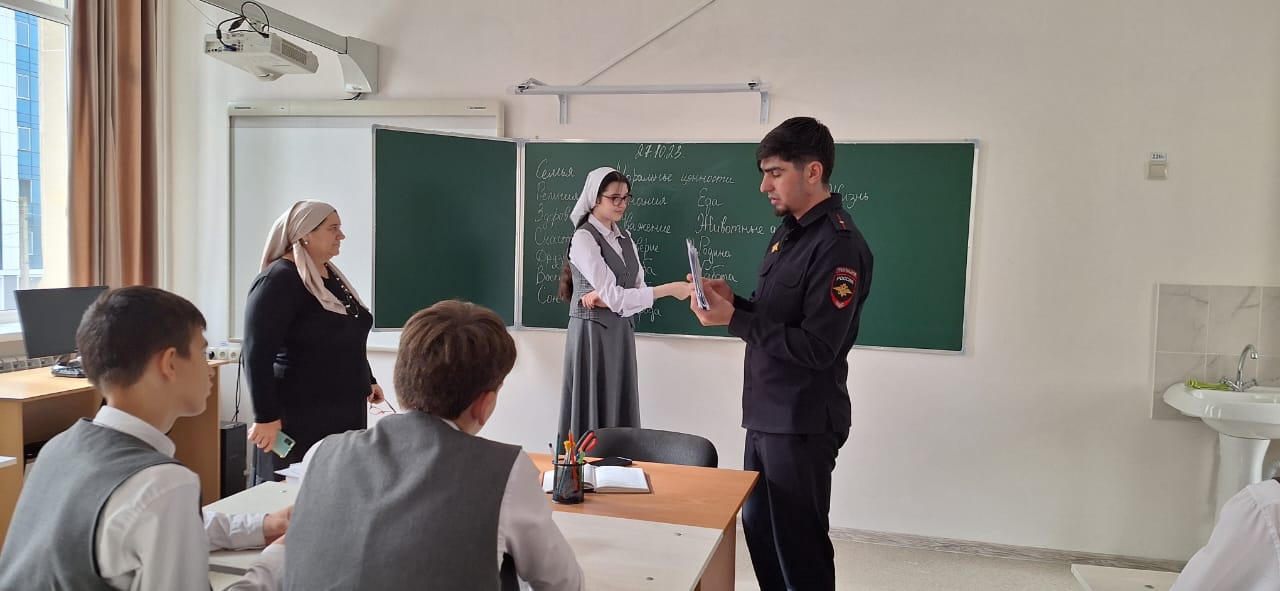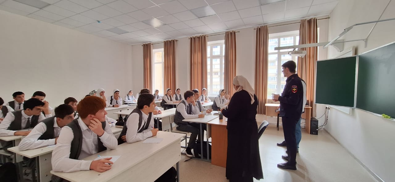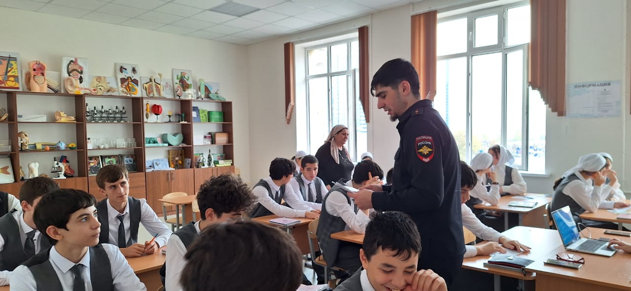 В рамках антинаркотической недели в МБОУ "Лицей 1 им. Н.А. Назарбаева" г.Грозного Висарагов Резван Ибрагимович Инспектор отдела УНК МВД по ЧР провел беседы в 9-10 классах.