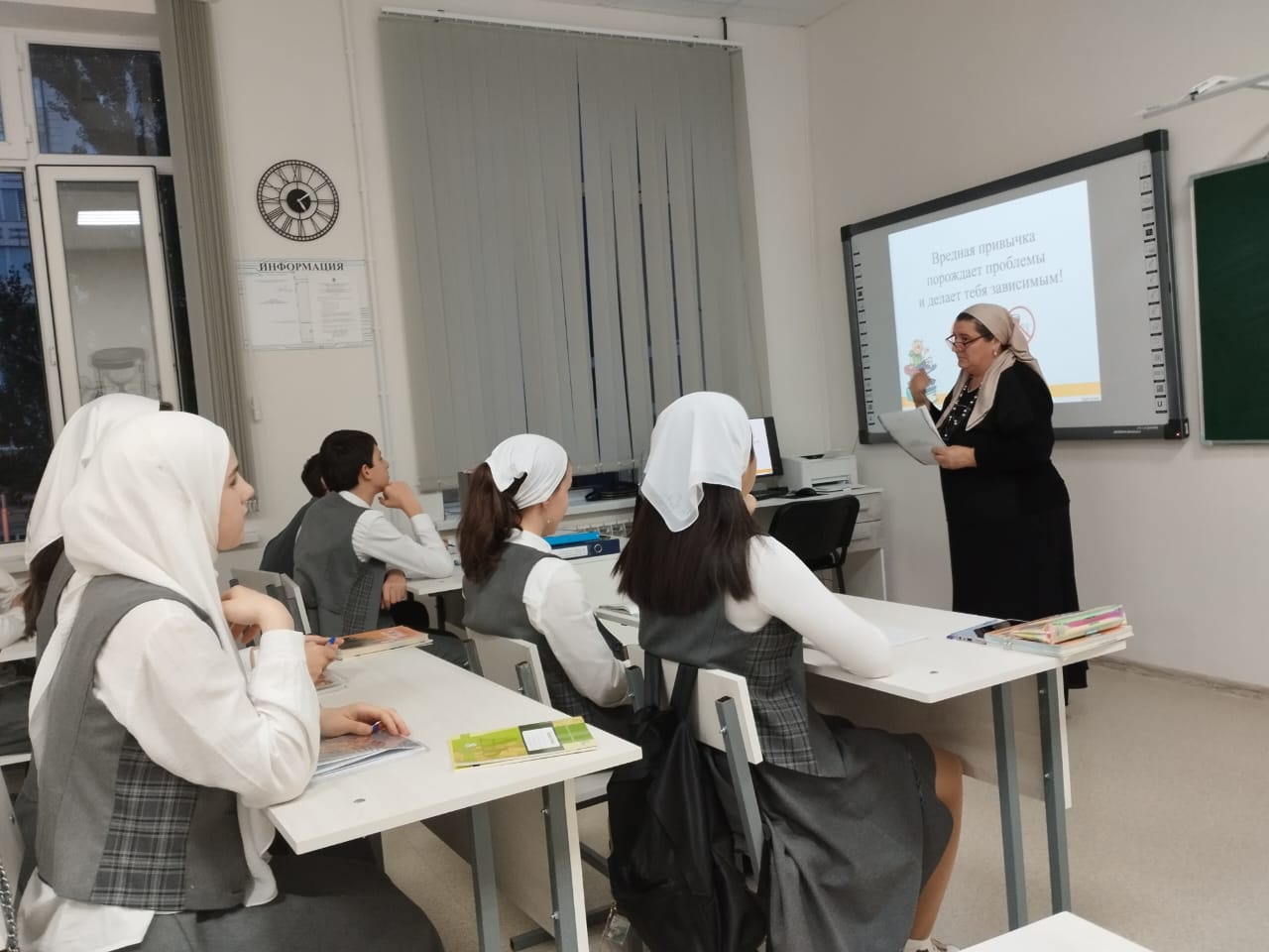 В рамках антинаркотической недели в МБОУ "Лицей 1 им. Н.А. Назарбаева" г.Грозного соц.педагогом Насаевой Л.И. проведены классные часы на тему: "Жизнь без вредных привычек"