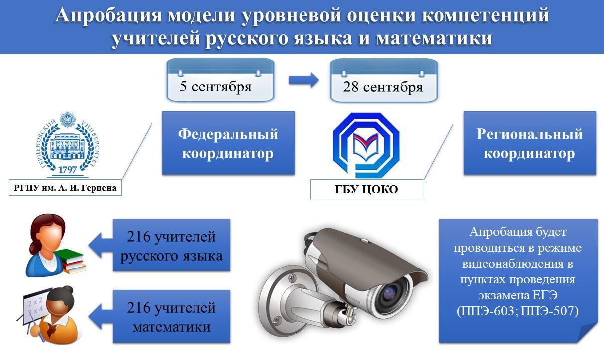 Федеральным координатором процедуры выступит Российский государственный педагогический университет им. А.И. Герцена; региональным координатором, по решению Министерства образования и науки ЧР, назначен Центр оценки качества образования. Исследование будет проводиться в несколько этапов и будет включать в себя электронное анкетирование, решение профессиональных задач, запись видеофрагмента урока и выполнение диагностической работы. Так же учителя проведут онлайн уроки. Диагностика будет проводиться в двух пункта приема экзамена (ППЭ-507, ППЭ-603) в режиме онлайн наблюдения. От нашего лицея для участия в апробации заявлены 3 педагога.