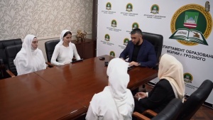 В завершение встречи руководитель ведомства отметил Благодарственными письмами Департамента образования Мэрии г. Грозного и цветами директора МБУ ДО «Дом Детского творчества Висаитовского района г. Грозного» - Виситаеву Лилию Васильевну, заместителя директора по УВР - Нуркаеву Марьям Саидбековну, и члена управляющего совета ДДТ - Цугаеву Луизу Хусеновну. Приятным подарком для коллектива стал денежный сертификат на 50 000 ₽ от Регионального общественного фонда имени Первого Президента Чеченской Республики, Героя России Ахмата-Хаджи Кадырова (Дала гlазот къобалдойла цуьнан).