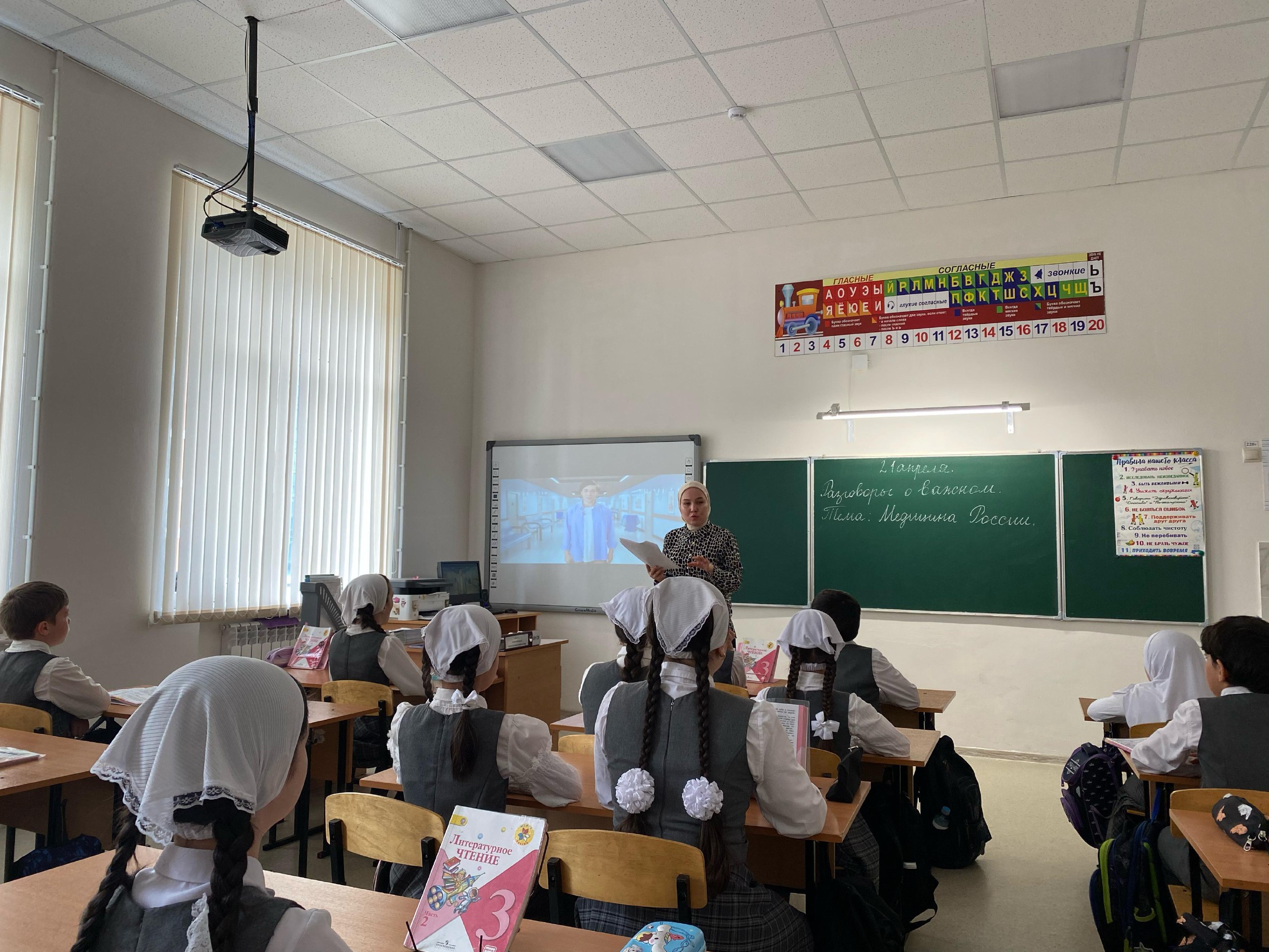 Учащимся 3–4-х классов рассказали о достижениях известных российских врачей, таких как Николай Пирогов, Иван Сеченов и Николай Склифосовский и других. Ребятам также напомнили о подвигах медицинских работников во время Великой Отечественной войны. Помимо этого, младшеклассники выполнили интерактивное задание «Медицинские профессии» и заполнят «Чек-лист здорового школьника».