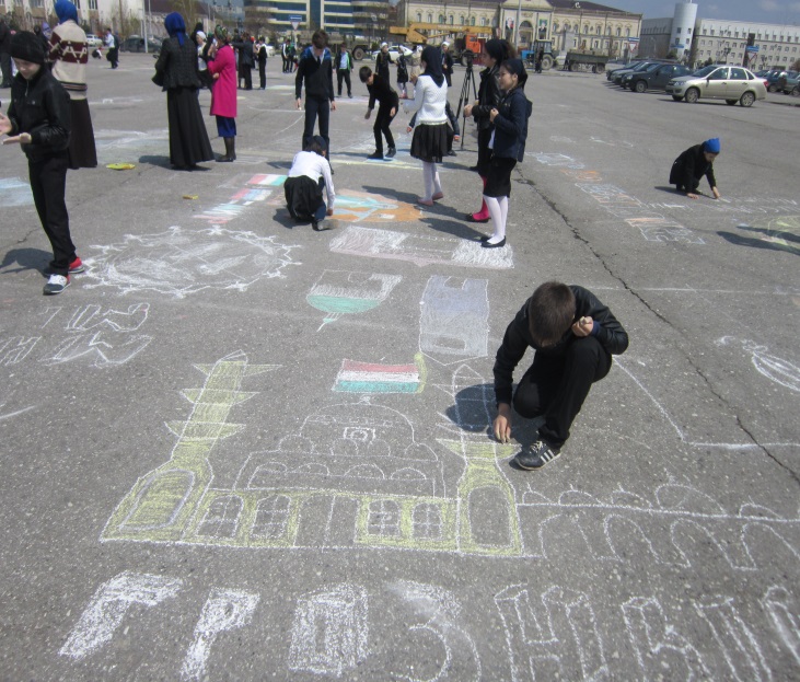 15.04.201515.04.15г учащиеся лицея №1 приняли активное участие в городском конкурсе рисунков на асфальте «Цветы Мира!», посвященный Дню Мира в Чеченской Республике.