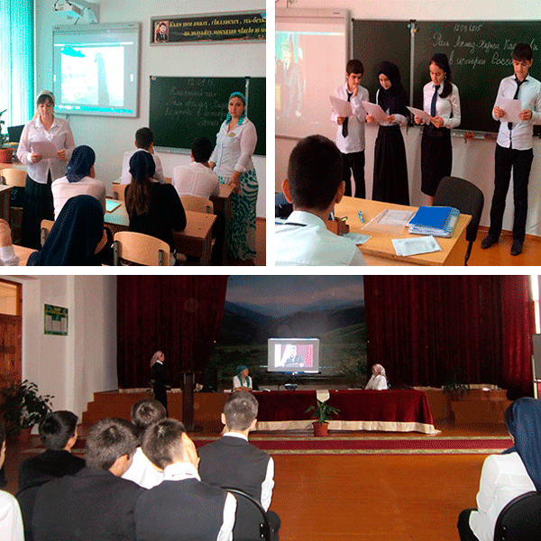 12.09.15г. в 5-11-х классах прошел Единый классный час «Роль А-Х. Кадырова в истории России». Учителя истории и обществознании провели конференцию с учащимися 9-х классоа.