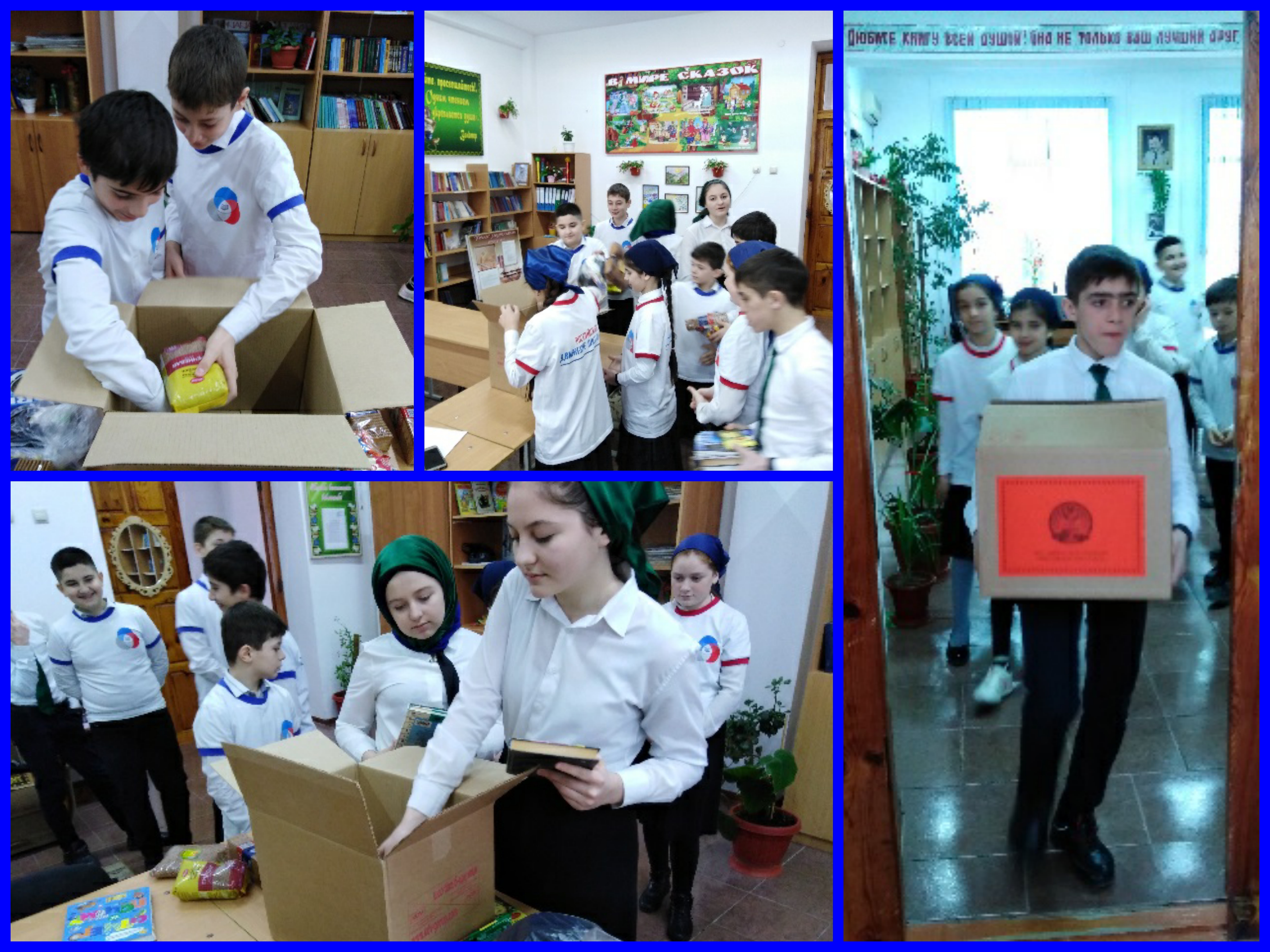 21.02.19г. в лицее, в целях патриотического воспитания, с участие детских организаций РДШ и Юные Кадыровцы» была организована и проведена акция «Собери посылку солдату», посвященную Дню защитников Отечества.