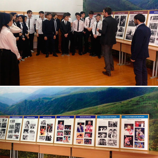 21.10.15г. в лицее представителями Национального музея г. Грозный Джабаровым Тамерланом и Гилаевым Асланом была организована и проведена фотовыставка об известных спортсменах по разным видам спорта. Ребята в очередной раз познакомились с историей спорта и с титулованными олимпийскими чемпионами.